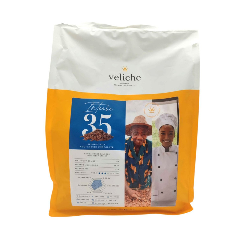 Laissez-vous séduire par l’équilibre parfait entre douceur et intensité avec notre chocolat de couverture au lait 35% de cacao, avec son profil du lait prononcé, des notes délicates de caramel et une finale sereine de cacao. Ce chocolat d’exception, élaboré à partir de fèves de cacao soigneusement sélectionnées, vous offre une saveur onctueuse et un goût authentique de chocolat au lait. Idéal pour les pâtissiers professionnels et amateurs, son format de 2,5 kg est parfait pour libérer votre créativité gourmande.