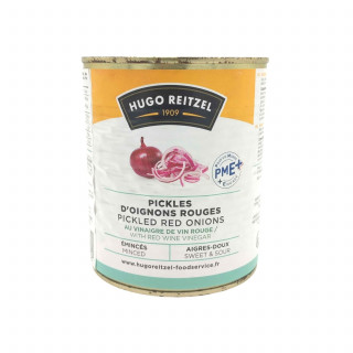Oignons rouges (53%), eau, vinaigre de vin rouge (7%), sucre, vinaigre d'alcool, sel, concentré de carotte pourpre, chlorure de calcium
