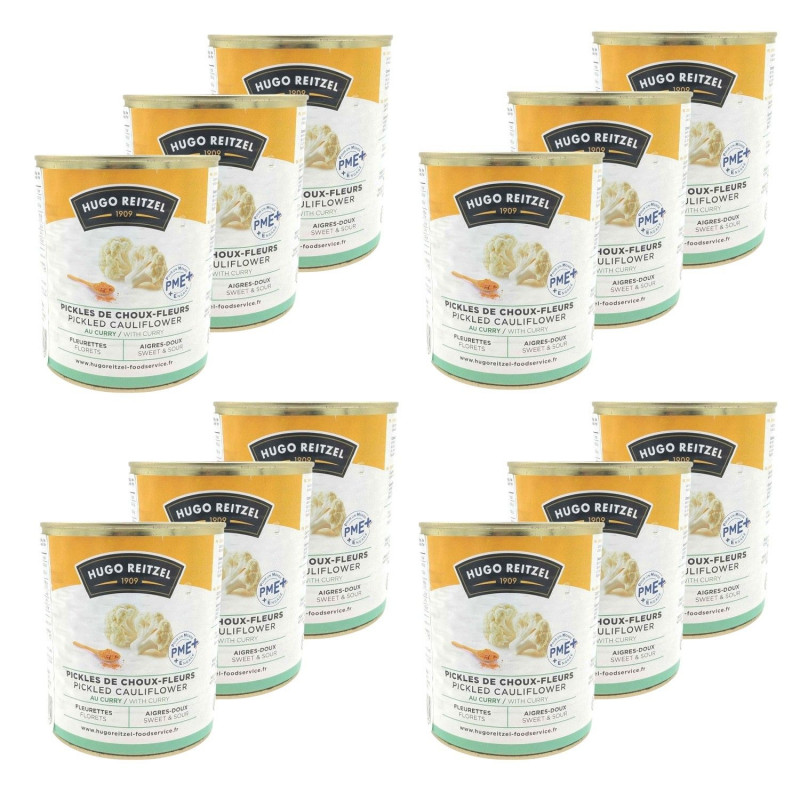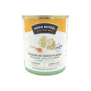 Choux-fleurs (47%), eau, vinaigre de vin blanc, sucre, sel, épice curry (0,2%), extrait de curcuma
